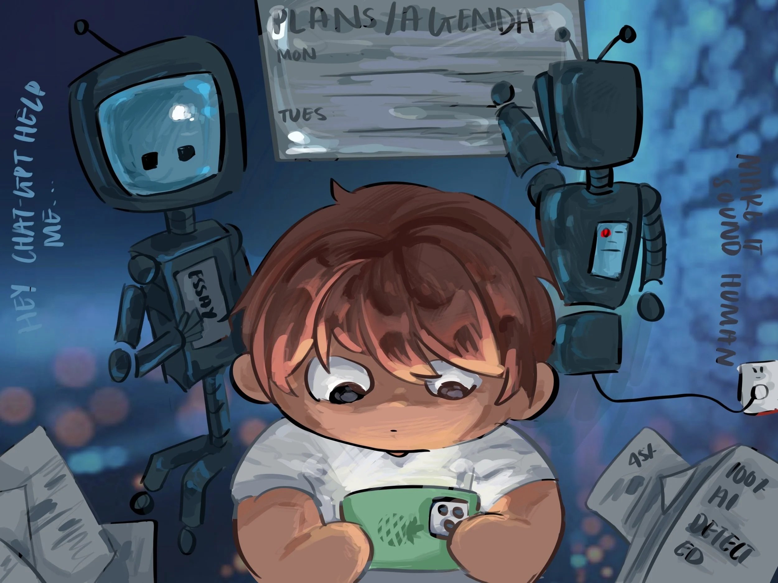 Our respondents estimated that 70% of high school students use A.I. to do their homework for them. Art: Luyi Zhang